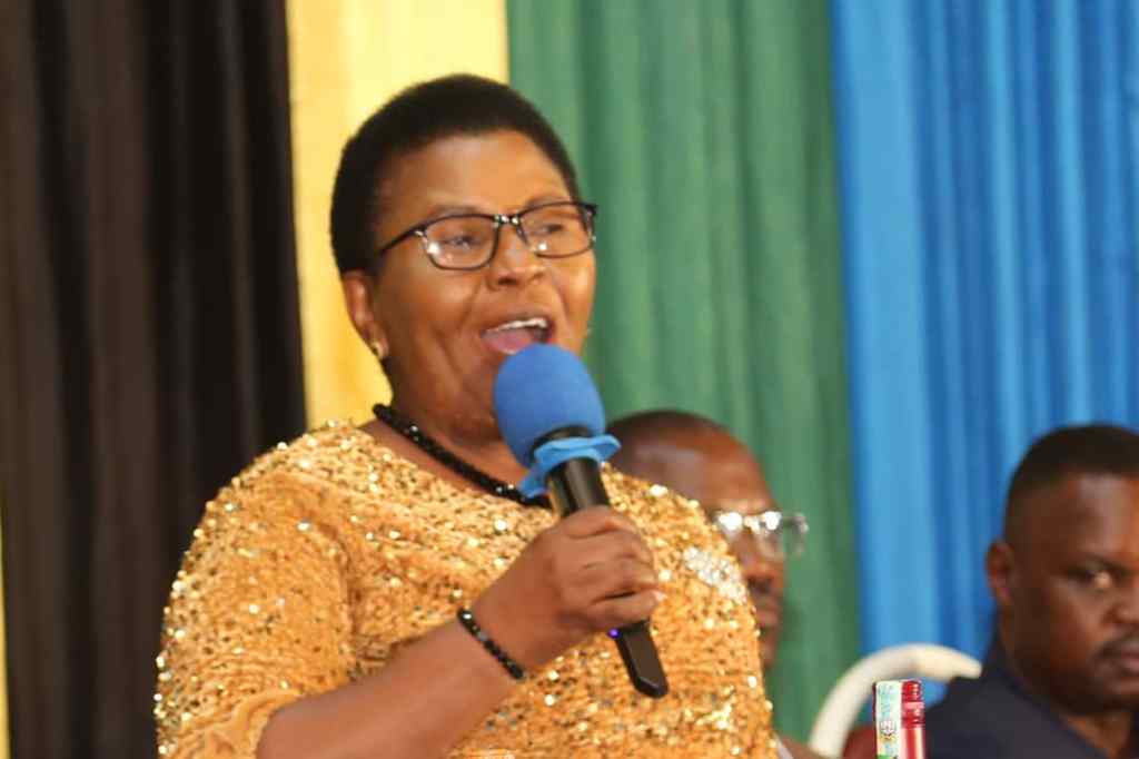 Katibu Tawala Mkoa wa Singida Dkt. Fatma Mganga akihutubia wananchi wa Mkoa wa Singida waliofika katika ukumbi wa RC Mission Manispaa ya Singida kwenye hafla ya kumuaga aliyekuwa Kamanda wa Polisi wa Mkoa huo DCP Stella A. Mutabihirwa aliyehamishiwa Makao Makuu ya Polisi na kumkaribisha Kamanda SACP Amon Daudi Kakwale.