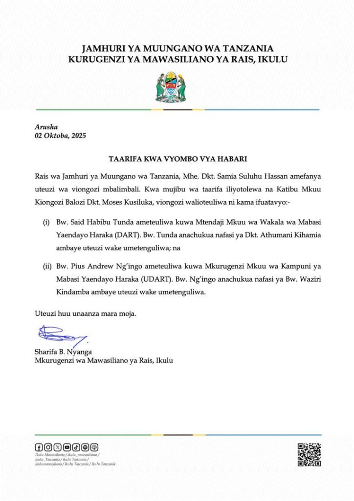 Rais Samia Ateua, Atengua Uongozi UDART, DART