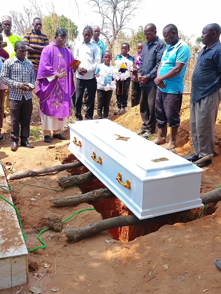 Ibada hiyo ya mazishi ilihudumiwa na Katekista Aron Mhagama na Kwaya ya Umoja ya Kigango cha Mlete ikijumisha kwaya ya Mtakatifu Joseph na Mtakatifu Bernadeta zote za kigango hicho huku ibada hiyo ikuhudhuriwa na wageni kutoka sehemu mbaalimbali mkoani Ruvuma na nje ya mkoa.